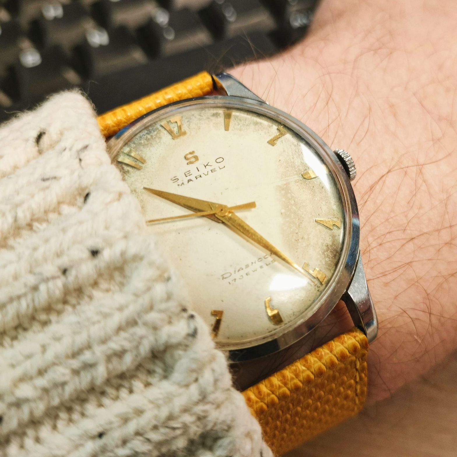 Modèle : Marvel Marque : Seiko Année : 1958 Calibre : Seikosha J13001 type 11 1/2 Boitier : Acier Observation(s) : Etat : A restaurer Statut : Collection